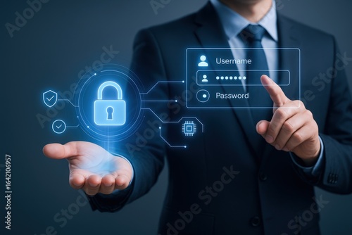 Cybersecurity Expert Displaying Data Protection with Digital Interface: Safeguarding Information in the Digital Age