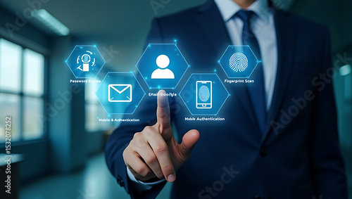 Cybersecurity Expert Using Futuristic Interface with Multi-Factor Authentication Icons – Secure Login Technology Concept