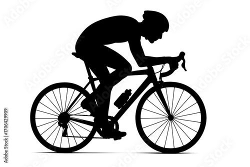 Cyclist silhouette on racing bike training or competing in sport event isolated on white background