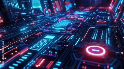 D rendering of blockchain nodes glowing with dynamic light and futuristic visuals.