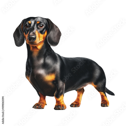 Dachshund Delight A Black and Tan Pup Posed with Charm Against a Clear Canvas