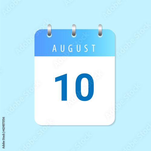 Daily calendar 10th of August month on white paper note.