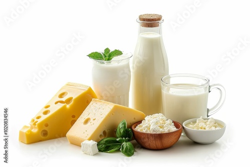 Dairy products isolated on white background