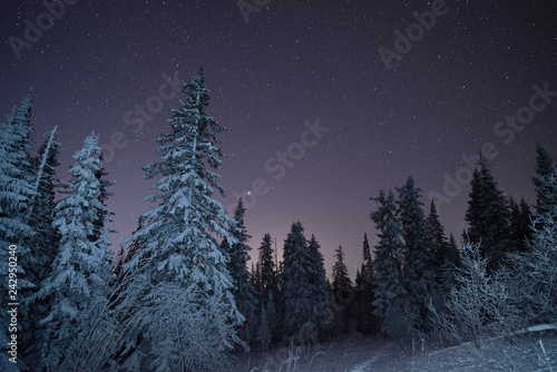 Dairy Star Trek in the winter woods. Dramatic and picturesque scene. In anticipation of the holiday. Carpathian Ukraine.