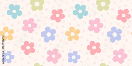 Daisy flower pattern. Cartoon vector plants. Retro abstract background in flat design. Botanical summer minimal elements.