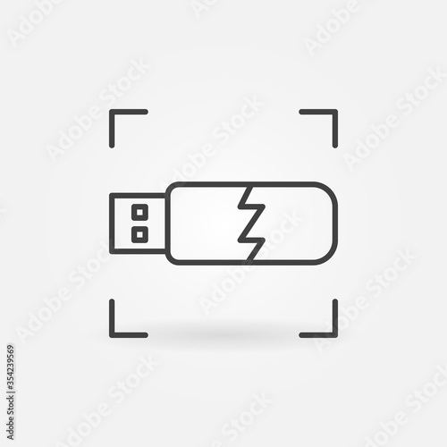 Damaged USB vector concept minimal outline icon or design element