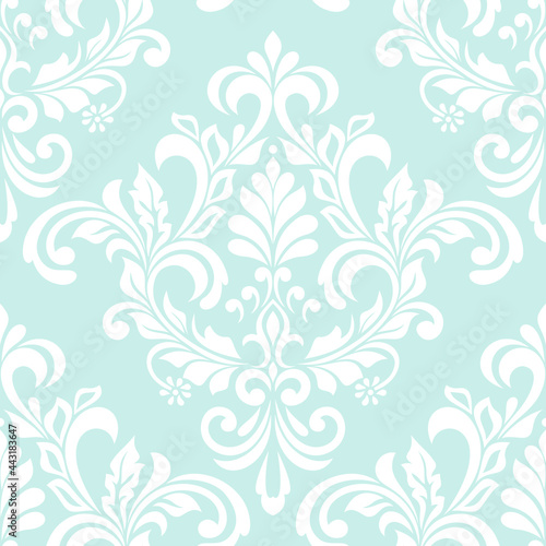 Damask seamless vector background. baroque style pattern. Blue and white floral element. Graphic ornate pattern for wallpaper, fabric, packaging, wrapping. Damask flower ornament.