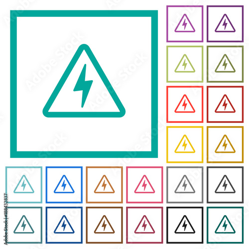 Danger electrical hazard flat color icons with quadrant frames