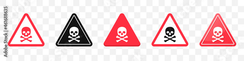 Danger sign with skull and crossbones icons collection. Set of attention sign icons in red. Vector illustration