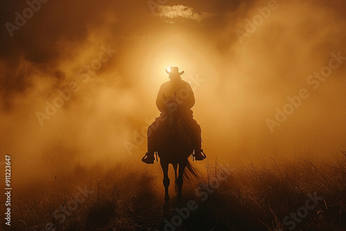 Dangerous cowboy western movie personage with gun and horse made with Generative AI modern technology