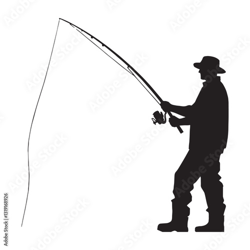 Daring Fisherman silhouette, always chasing the next big catch - Fisherman illustration - Minimalist Fisherman vector - Profession silhouette
