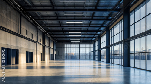 dark abstract concrete and soldered metal steel hangar hall industrial design 3d rendering