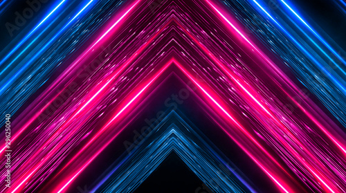 Dark abstract futuristic background. Neon lines, glow. Neon lines, shapes. Pink and blue glow.