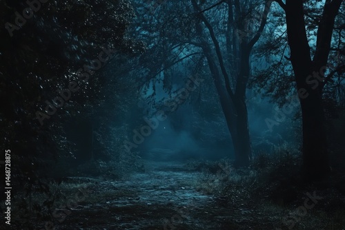 Dark and haunted forest at midnight reveals shadows and mysteries lurking in the silent night, Dark and haunted forest at midnight, Seamless ing Photo background