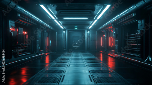 dark black futuristic studio laboratory empty hall 3d render illustration