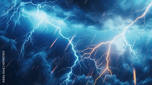 Dark Blue Clouds Illuminated by Dazzling Lightning Strikes