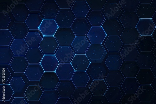 Dark blue hexagonal grid with glowing lines