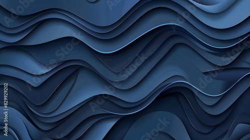 Dark blue paper waves abstract banner design. Elegant wavy vector background. Generative AI.