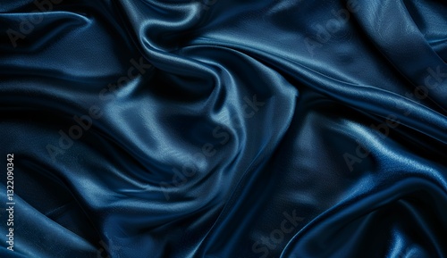 Dark Blue Satin Fabric with Smooth Elegant Folds