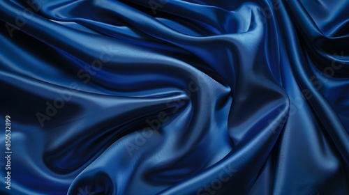 Dark blue silk satin Soft folds Fabric Navy blue luxury background Space for designWavy lines Banner Flat lay top view table Beautiful Elegant Birthday Christmas Valentines Day : Generative AI