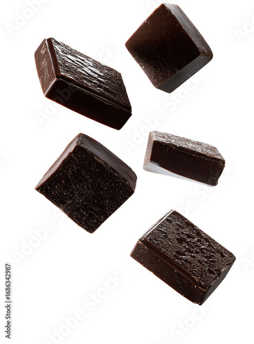 Dark chocolate squares in mid-air (1)