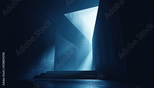 Dark, concrete tunnel with light shafts