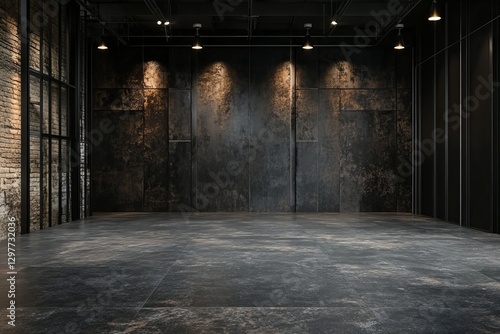 Dark Industrial Loft Interior Design Empty Room Space Modern Architecture Background Black Metal Wall Grey Floor Industrial Style Photography Studio