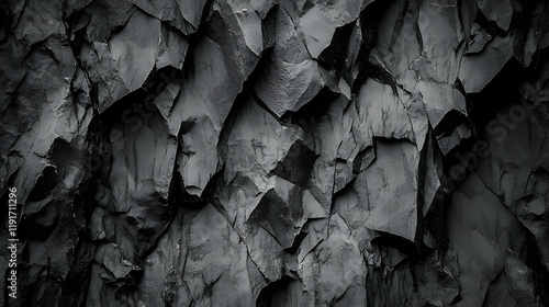 Dark Rock Face Texture Shows Cracked and Rugged Surface Detail in Monochrome Photography.