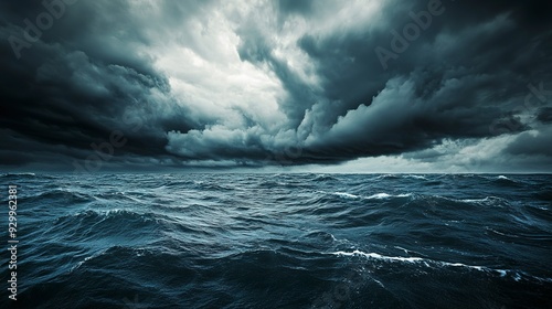 Dark sea surface with a dramatic cloudy sky above. Approaching storm