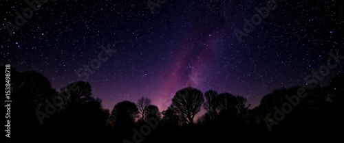 Dark silhouettes of trees against a vibrant, star-filled night sky, dark, dark sky