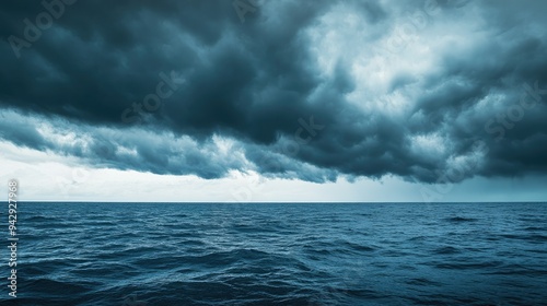 Dark storm clouds rolling over the ocean, with ample space for copy.