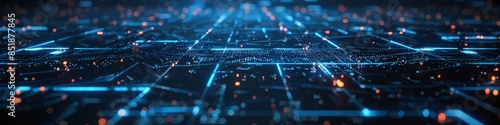 Dark tech background showcasing a fragmented grid with broken connections, illuminated by sporadic neon highlights