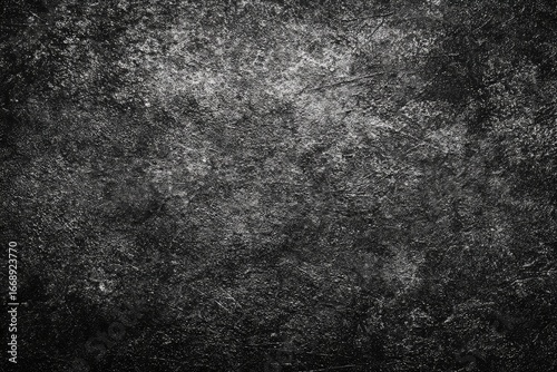 Dark, textured grayscale image; mottled, scratched surface with varying shades of gray, suggesting age and wear