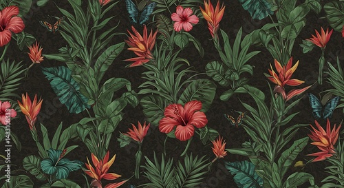 Dark Tropical Floral Seamless Pattern