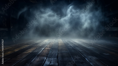 dark wooden floor, smoke and smoke background. empty place.