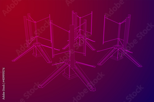 Darrieus wind turbine. Windmill generator wireframe low poly mesh. Vector illustration