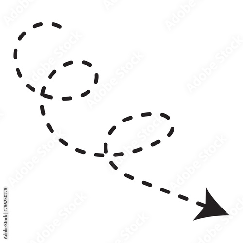 Dashed arrow set. Vector doodle dot line. Thin pointer arrows