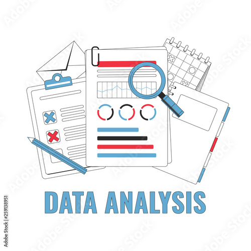 Data analysis and financial research. Financial data concept. Vector illustration