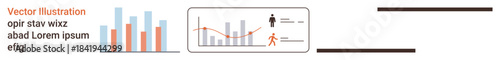 Data analysis, business strategy, performance metrics, statistical insights, financial forecasting, reporting. Bar charts, line graph and icons trends. Data analysis and business strategy concept