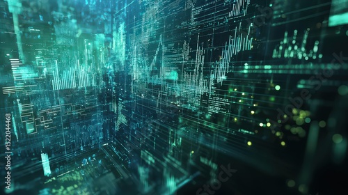 Data visualization event analyzing complex data streams in a digital environment with a futuristic viewpoint