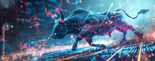 Data-driven Bull Market Surge: Abstract Financial Growth in Digital Landscape