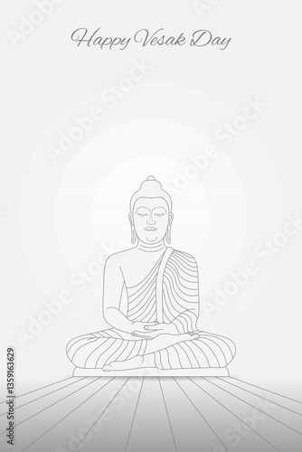 Day of Vesak vector art. Happy Vesak Day. Line art depiction of Lord Buddha on a gentle light background. Vesak Day designs and meditation themes.