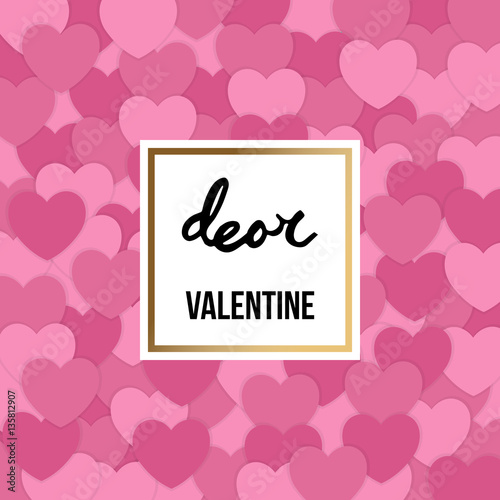 Dear Valentine card design with pink hearts. Valentine's day. Vector illustration.