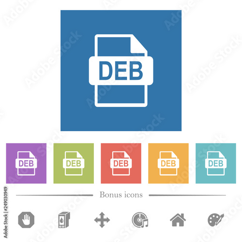 DEB file format flat white icons in square backgrounds