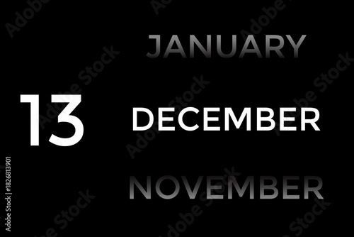 December 13 calendar with black background