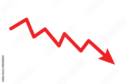 Decline red arrow isolated on white background vector. abstract financial chart with red color downtrend line graph.
