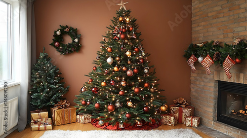 Decorate Festive Christmas Tree with Ornaments and Gifts