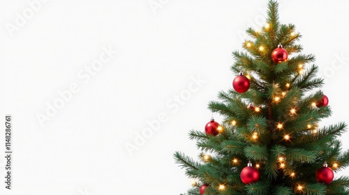 Decorated christmas tree with ornaments and lights, transparent background for festive holiday designs
