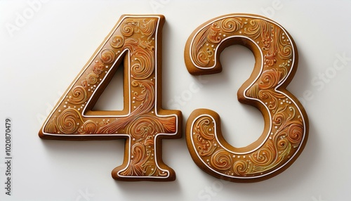 Decorated cookie, number 43, illustration for birthday or anniversary celebration