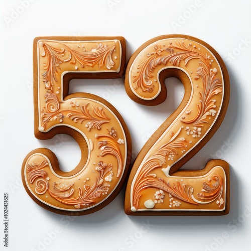Decorated cookie, number 52, illustration for birthday or anniversary celebration